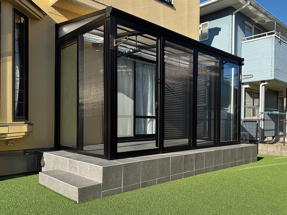 「古くなって使い勝手が悪くなってきたウッドデッキとサンルームをキレイにしたい。お庭が広いため雑草のお手入れが大変で困っており、ノーメンテナンスのお庭にしたい」とのご依頼でした。